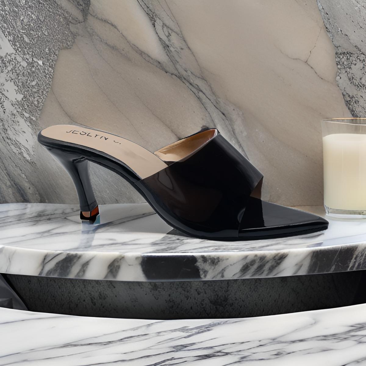 Give your fashion game a spin with this new range of JES Glamour Shine heels. Designed specifically for the modern woman, so as to produce comfort and fashion embodied in the design of shoes, sandals, or heels, these gorgeous mules heels are a staple in every wardrobe. Featuring synthetic leather, these heels boast a sleekly chic silhouette with a transparent black upper and pointed mid-heel that perfectly matches every outfit. Whether it is a party or you simply need to spice up the ordinary dress, you'll definitely shine with confidence using these heels and shoes.
